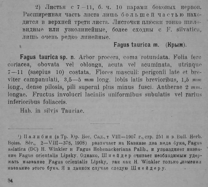 | Дмитрий Орешкин | По большому счёту переходный характер крымских популяций вроде как не вызывает сомнений. Если признавать таксономическую значимость этих различий (т.е. не валить скопом все окрестные буки в F. sylvatica), вопрос лишь в ранге "переходного таксона". По-моему, при нынешнем положении вещей означенные популяции лучше отнести к F. × taurica. |