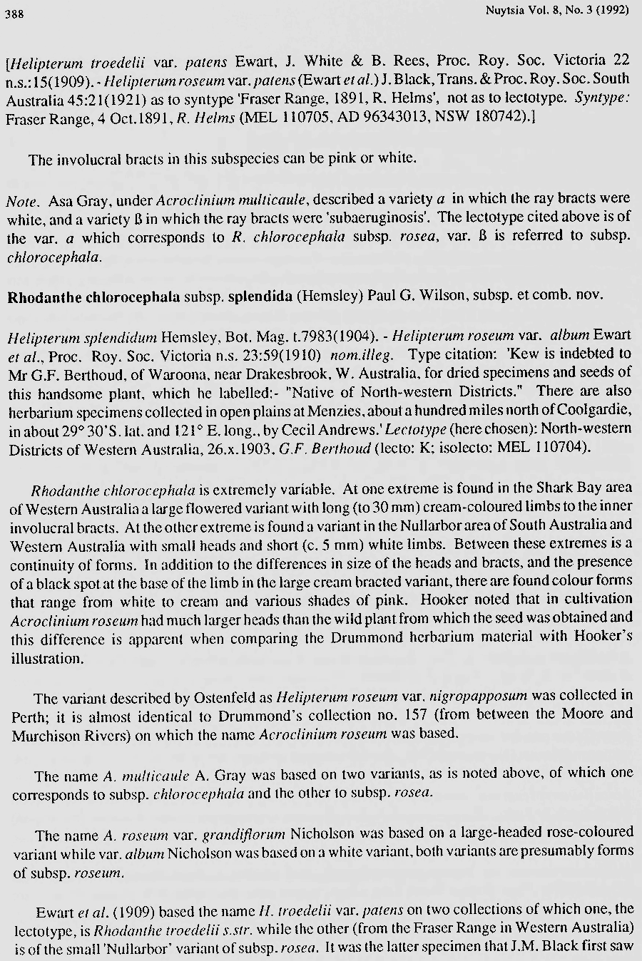 | Андрей Ковальчук | Обнародование комбинации Rhodanthe chlorocephala (Turcz.) Paul G. Wilson (Nuytsia 8(3): 386. 1992):