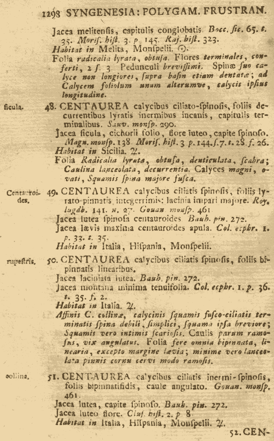 Протолог Centaurea rupestris L. (Species Plantarum, ed. 2, 2: 1298. 1763):