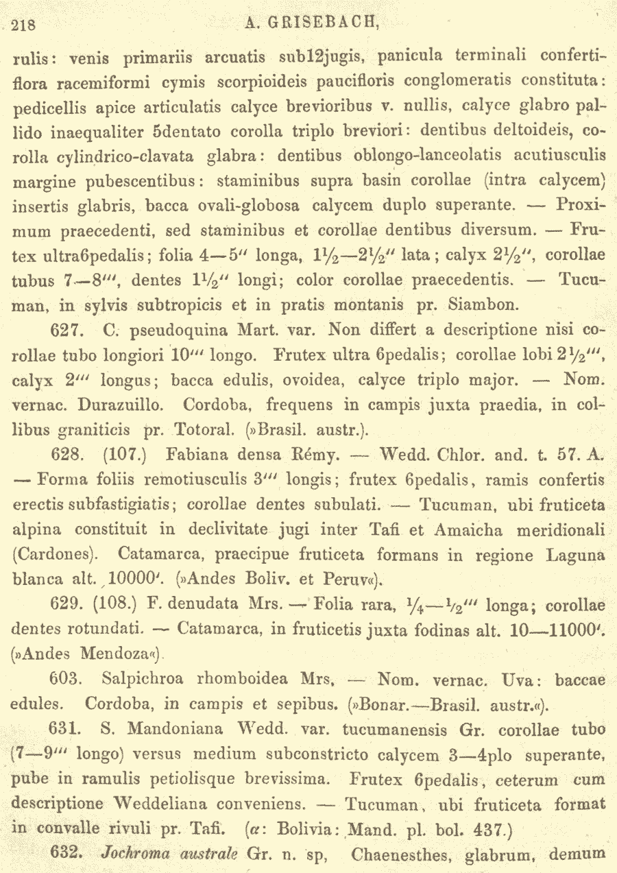 Протолог Iochroma australe Griseb. (Abhandlungen der Königlichen Gesellschaft der Wissenschaften zu Göttingen 19: 218. 1874. [Dec 1874]):