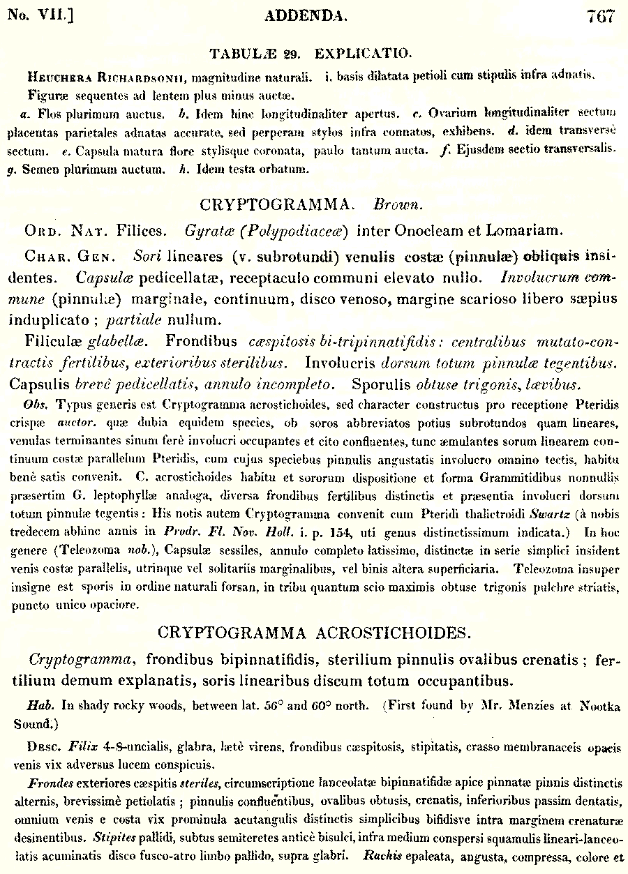 Протолог рода Teleozoma R. Br., nom. illeg. (Narrative of a journey to the shores of the Polar Sea, in the years 1819, 20, 21, and 22: 767. 1823; тип: Teleozoma thalictroides (L.) R. Br. ex H. Richards (≡ Acrostichum thalictroides L. ≡ Ceratopteris thalictroides (L.) Brongn.: