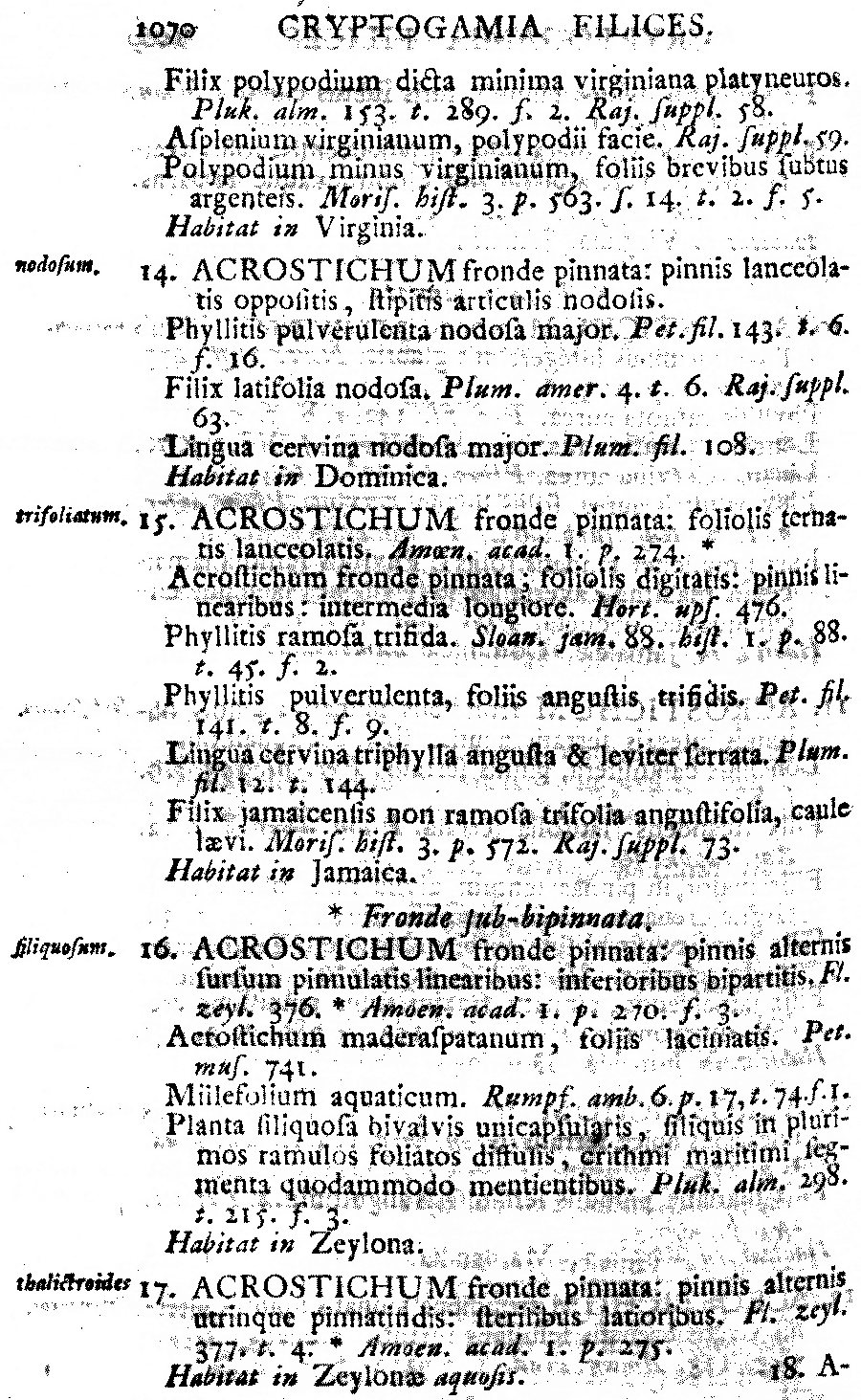 Протолог Acrostichum thalictroides L. и Acrostichum siliquosum L. (Species Plantarum 2: 1070. 1753 [1 May 1753]):