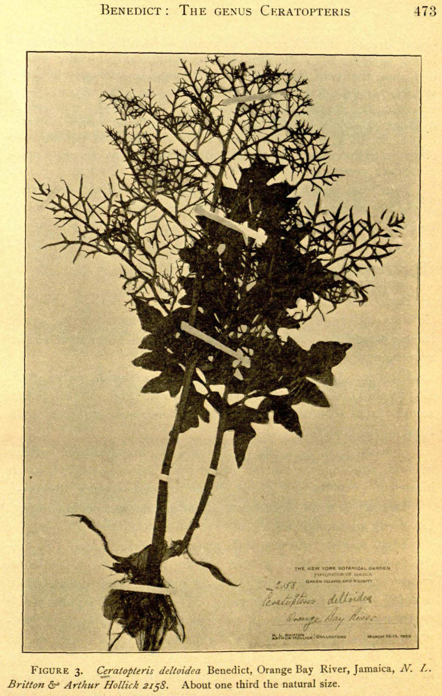 Протолог Ceratopteris deltoidea Benedict (Bulletin of the Torrey Botanical Club 36: 472, fig. 3. 1909):