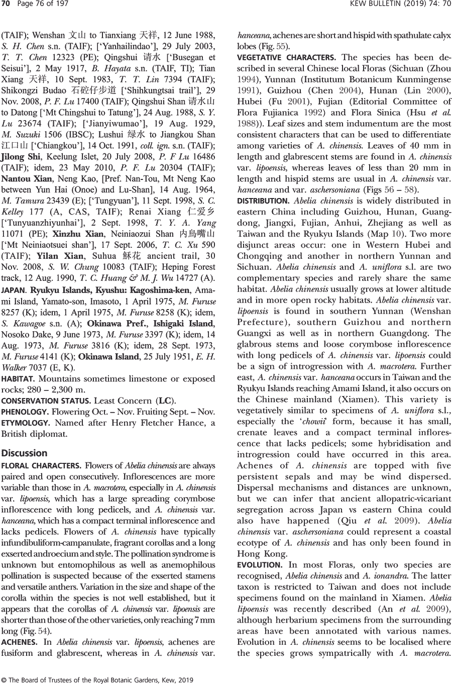 | Андрей Ковальчук | Публикацию, в которой было обнародовано название Abelia chinensis var. ionandra (Hayata) Masam. (Transactions of the Natural History Society of Formosa 28: 436. 1938), найти не удалось. Название статьи, в которой оно было обнародовано - Masamune G. (1938) Miscellaneous notes on the flora of Eastern Asia VI. Trans. Nat. Hist. Soc. Formosa 28: 431-437. |
