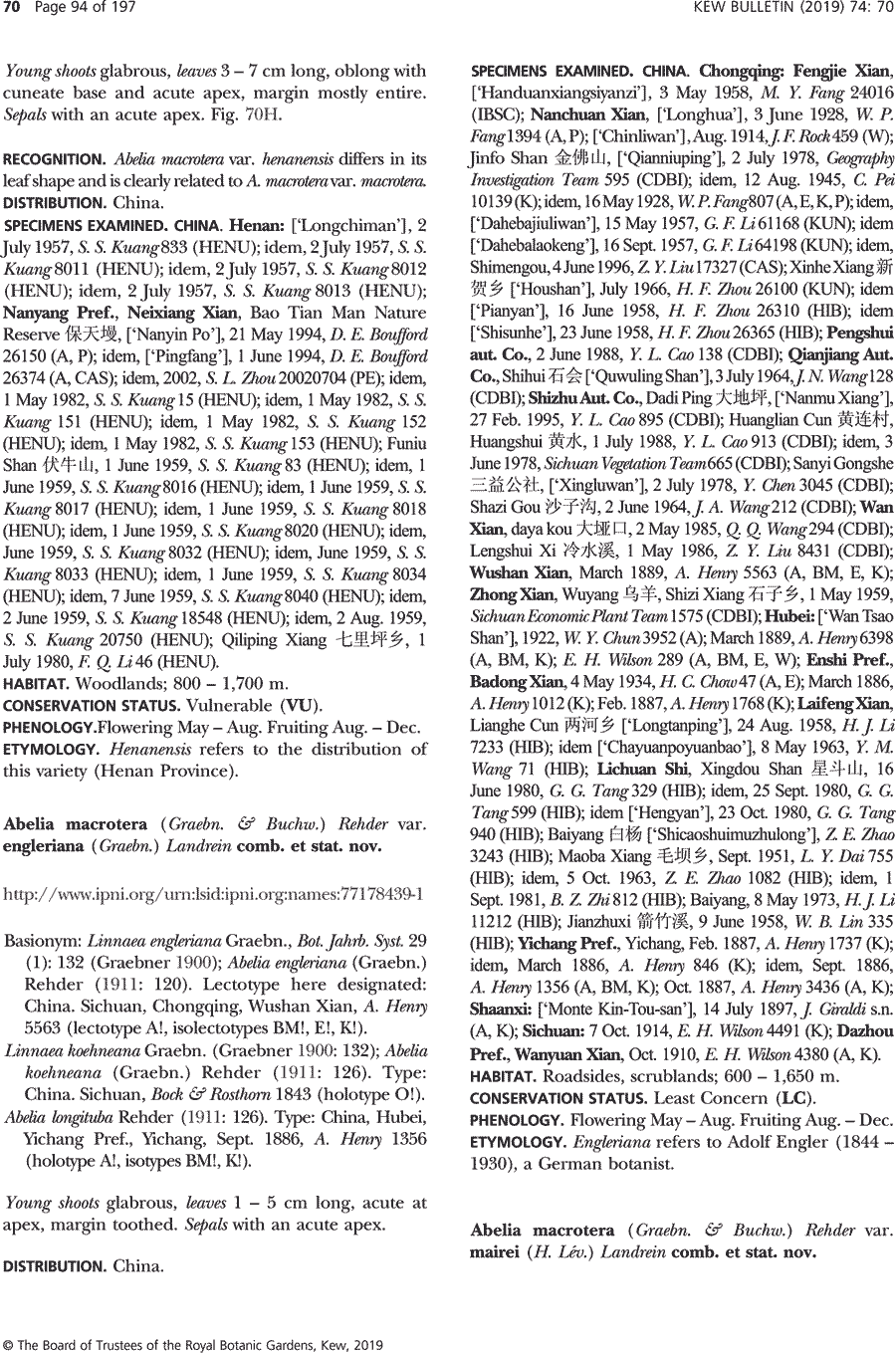 | Андрей Ковальчук | Обнародование комбинации Abelia macrotera var. engleriana (Graebn.) Landrein (Kew Bulletin 74(4)-70: 94. 2019):
