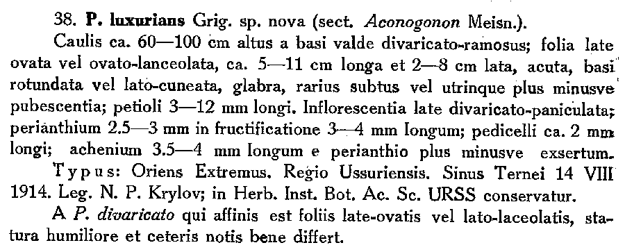| Андрей Ковальчук | Протолог Polygonum luxurians Grig., nom. illeg. (non Danser, 1927) (Флора СССР 5: 723, 664-665. 1936):