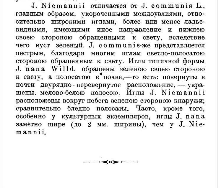 | Андрей Ковальчук | Описываемые отличия, на мой взгляд, скорее являются результатом модификационной изменчивости растений, произрастающих в широтном или высотном градиентах (что подтверждают и результаты генетических исследований). По крайней мере, в Фенноскандии при продвижении на север наблюдается плавный переход от J. communis s.str. к J. niemannii, а затем к J. sibirica. |