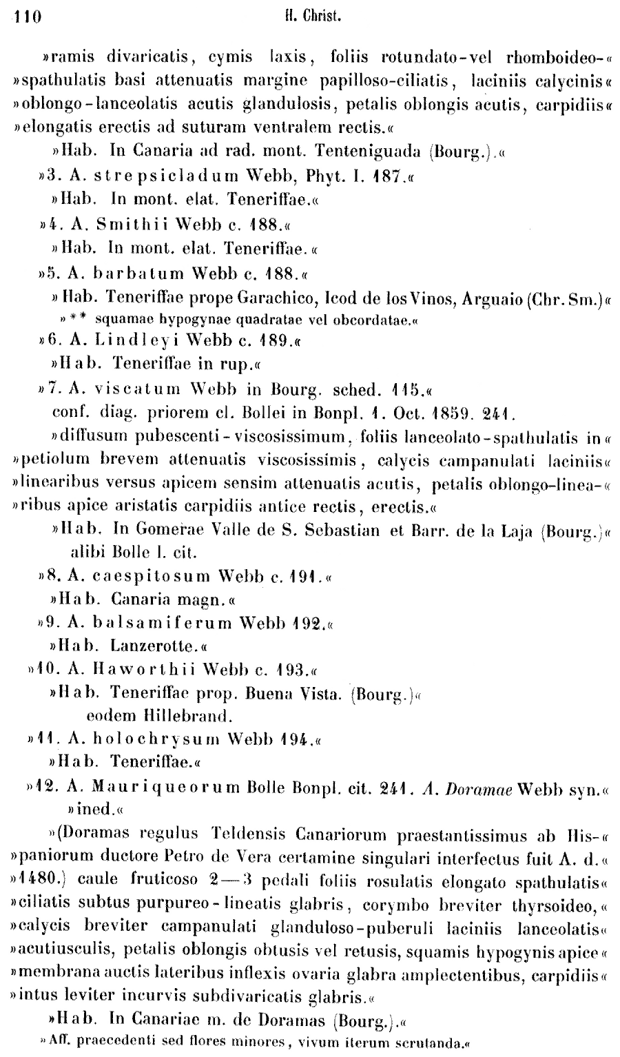 | Андрей Ковальчук | Обнародование комбинации Aeonium doramae Webb ex Christ, nom. inval. (Botanische Jahrbücher für Systematik, Pflanzengeschichte und Pflanzengeographie 9(1): 110. 1887 [29 Aug 1887]):