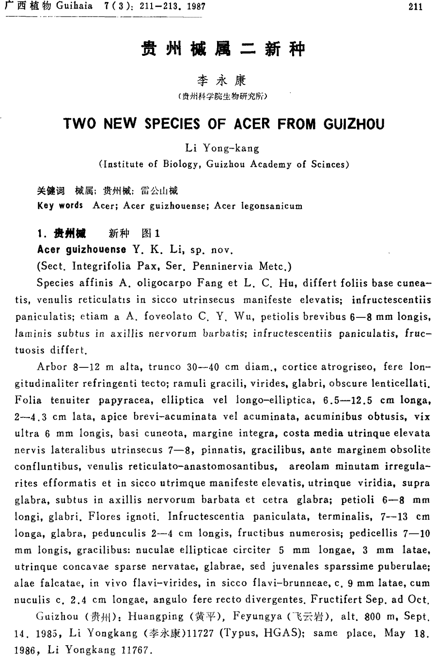 | Андрей Ковальчук | Протолог Acer guizhouense Y.K. Li (Guihaia 7(3): 211. 1987) и Acer legonsanicum Y.K. Li (Guihaia 7(3): 212. 1987):