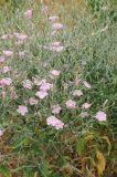 Многолетник 60—100 см выс., с толстым стержневым корнем и крепкими растопыренно и длинно ветвистыми стеблями, в нижней части прижато или б. м. оттопыренно, вверху прижато и густо волосистыми; л. эллиптические, продолговатые, продолговато-ланцетные или линейно-продолговатые, в основании суженные, б. ч. острые или островатые, б. м. густо или рассеянно и длинно волосистые. Цв. обычно б. м. многочисленные, расположены по одному в растопыренно длинно ветвистых дихазиальных соцветиях; чшл. продолговатые или продолговато-обратнояйцевидные, 3—5.5 мм дл., на верхушке коротко заостренные или остроконечные, б. м. густо (но внутренние нередко лишь по средней жилке) прижато опушенные; вн. 10—23 мм дл., красный или яркорозовый; коробочка в очертании эллиптическая или почти шаровидная, около 5—7 мм дл., голая, чшл. при плодах отогнуты в стороны или даже книзу. Цв. V—VII; пл. VI—IX.