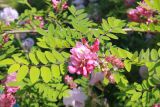 Многолетник. Дерево до 12 м выс., с широкой кроной и стволом до 35 см в диаметре, покрытым толстой темно-коричневой, гладкой корой. Побеги, стержни листьев, ось соцветия, цветоножки и чашечки клейкие от железистого опушения. Листья до 20 см дл., из (11) 13—25 (27) листочков; листочки продолговато-эллиптические, 2..S—4 см дл. и до 2 см шир., на верхушке б. или м. тупые и здесь с коротким шипиком, при основании округлые или широко клиновидные, в раннем возрасте б. или м. опушенные, позднее сверху голые, ярко-зеленые, снизу сероватые, голые или опушенные; прилистники превращены в шиловидные колючки 4—5 мм дл. или опадают. Цветки розовые, около 2 см дл., без аромата, по 6—15 в почти прямостоящих кистях, 5—-10 см дл. и 4—5 см шир.; парус с желтым пятном; чашечки до 7 мм дл. и 5 мм шир., темно-красная, с узко треугольными зубцами. Бобы продолговато-линейные, 5.5—9 см дл. и до 12 мм шир., на конце с загнутым кверху носиком, негусто железисто-щетинистые. Семена продолговато-почковидные, около 4 мм дл. и 2 мм шир., гладкие, коричневые, матовые. Цветение в V—VI, иногда вторично в VIII, плодоношение с VIII.